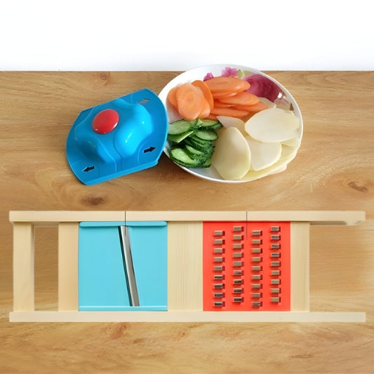 Cet outil pratique permet de trancher, râper et découper fruits et légumes en un clin d'œil.